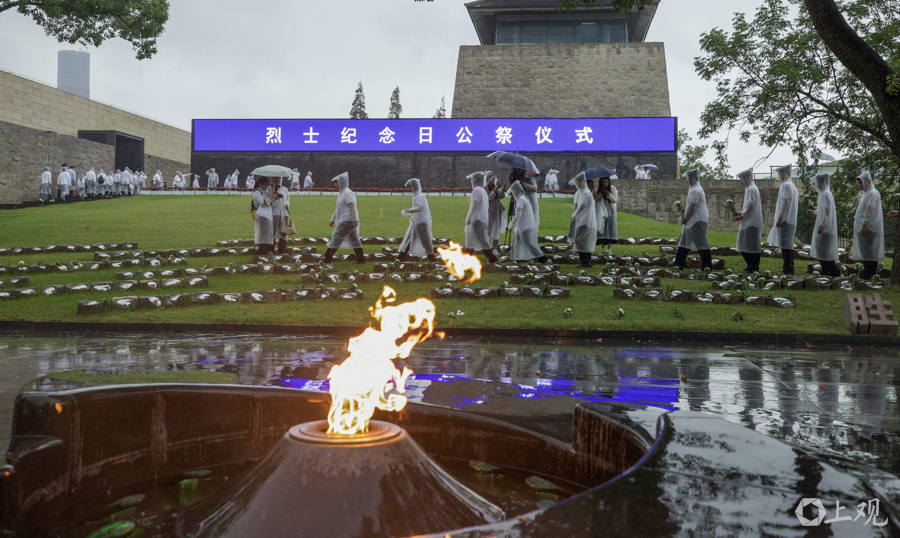 上午9时,公祭仪式在纪念馆胜利广场举行。