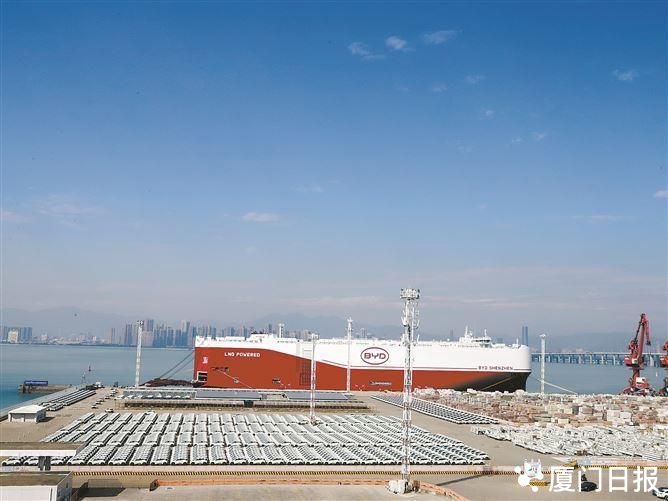 昨日,在厦门海关所属东渡海关监管下,1768辆比亚迪新能源汽车搭乘企业自营滚装船“深圳号”,从厦门现代码头起航,驶向墨西哥。这是“深圳号”首航厦门。
