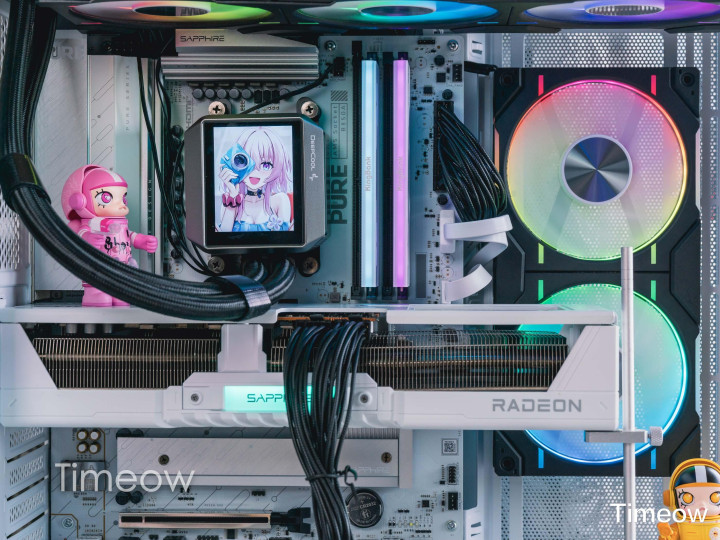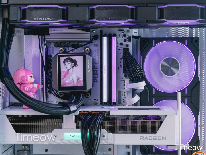 这款蓝宝石RX 9070极地版简直是为颜值党量身定做的!全白机甲风外壳往透侧机箱里一装,颜值直接翻倍。