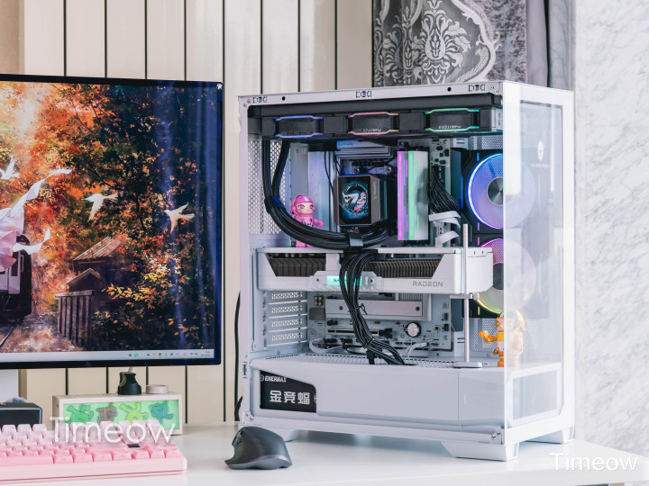 这样一整套配下来预算大概1.2W,既能4K高画质玩3A,又能应对视频剪辑、AI 绘图这些生产力需求,而且这一套高颜值摆桌上就是颜值担当。