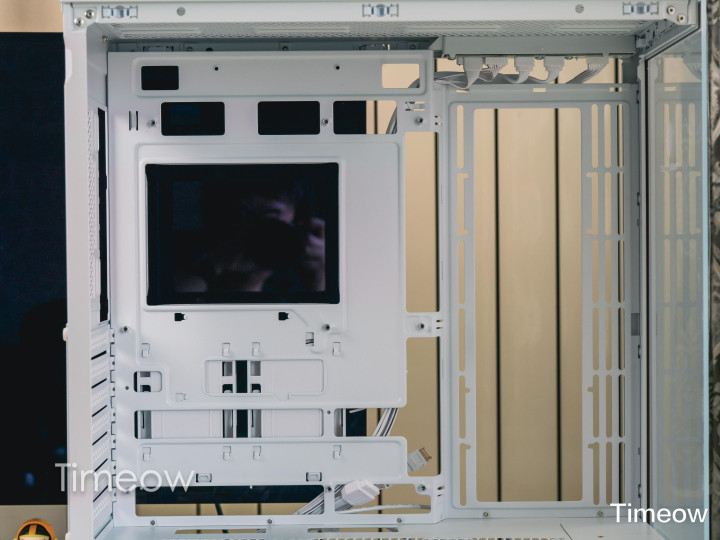 它的结构非常合理,用料也很扎实,内部整体的五金件硬邦邦沉甸甸,很有分量,值得一提的是它支持最新的背插主板,视觉效果更清爽!