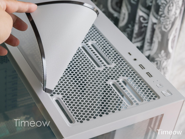而且内部空间也够大,MATX/ITX/ATX主板、360水冷、三槽以上的显卡、16cm的ATX电源都能塞进去,兼容性没的说。侧面板和底部部还能装机箱风扇,夏天玩游戏机箱里也不闷。