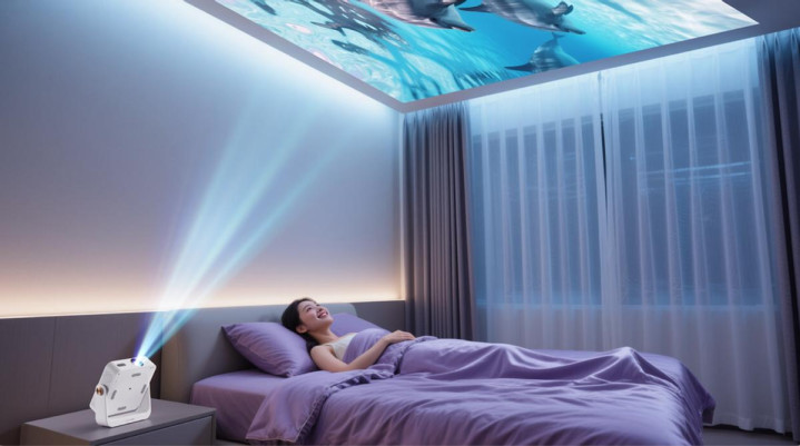 玩法方面,它支持AI触控投影--使用触控笔可精准点触投影,互动体验更有趣!它还能触控书写和图画,办公或者即兴创作有了更多的场景加持,它也支持AI语音互动,找片单、查天气或者调整音量都更方便,它还支持AI隔空指向遥控,内置海思352芯片并搭载32GB大存储,日常完全够用!它的整机仅有1.22kg,拎起即走非常方便!其厚度为55mm基本与一本书差不多厚度,其云台为可调整160°平台,正投、俯投都方便,可以看幕布、可以看天花板,极为方便!总之,算是一款很不错的入门级投影仪产品。