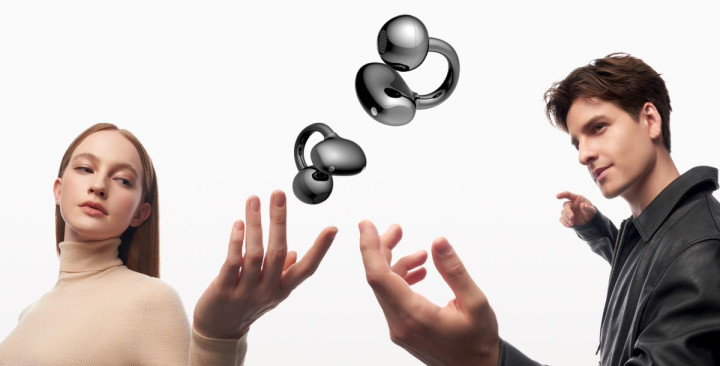 这次荣耀亲选也有耳夹式耳机新品--倒是与自家的普通款没有定位上的重叠,它推出三种配色,结构为舒适钛拱桥架构且能够适配多种耳型,其内置12mm双磁路单元并采用更好的LCP液晶振膜,并提供定向传声功能,无论是声音品质还是声音隐私都做的更加到位。它还内置了骨传导麦克风并支持AI通话降噪功能,嘈杂环境也能清晰通话。